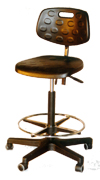 Peruskelpoinen työtuoli teollisuuteen ja suurkeittiöihin! Korkea pilari ja jalkarengas lisävarusteena. Istuinkorkeus säädetään kaasujousella. Ristiselän korkeus- ja istuinsyvyys säädettävissä. Tuolissa kaksoispyörät tai liukunastat.