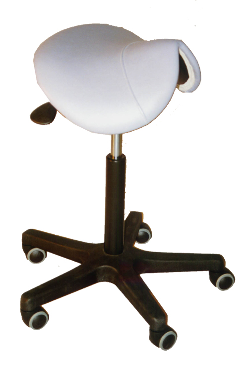 Satulatuoli. Istuinkorkeus säädetään kaasujousella. Säätövara 20cm. Istuimen kaltevuuskulma säädettävissä. Tuolissa on pehmeäreunaiset, lattiaystävälliset kaksoispyörät.