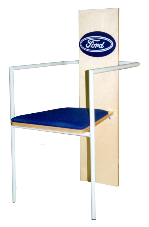 Todella hieno, uutta muotoilua oleva asiakastuoli! Selkänojan tyynyosan saa usealla eri muotoilulla ja eri tarjouksella logonne mukaan (kuten kuvassa).